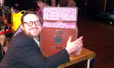 This brilliant device is the home made guitar amp, used on stage by Tsar Nicholas III & The Exiles. It was made from a vintage record box and it sounds lovely.