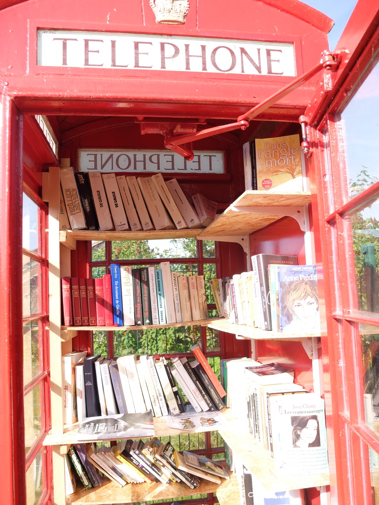 - English phone box book swap, Bernières-sur-Mer near Juno Beach
