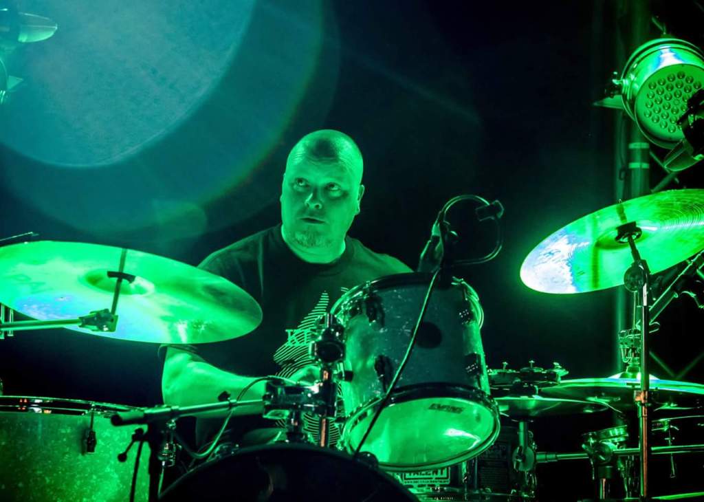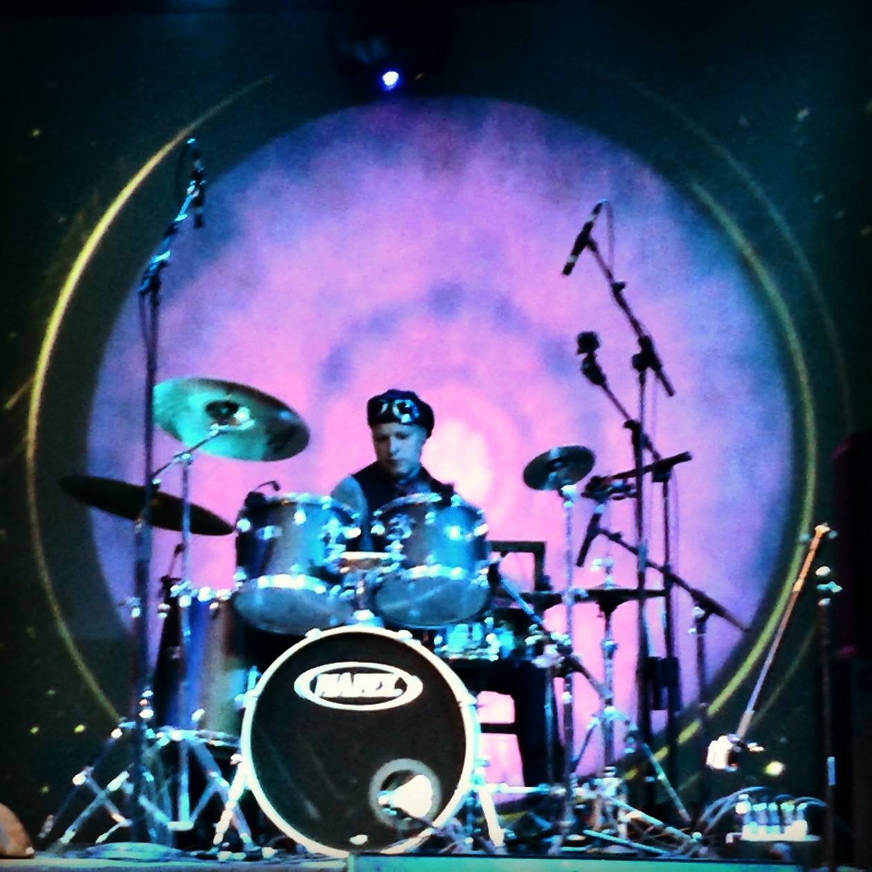 Drumming live on my acoustic kit with homemade triggers in Endoflevelbaddie. at 360 Club Leeds.